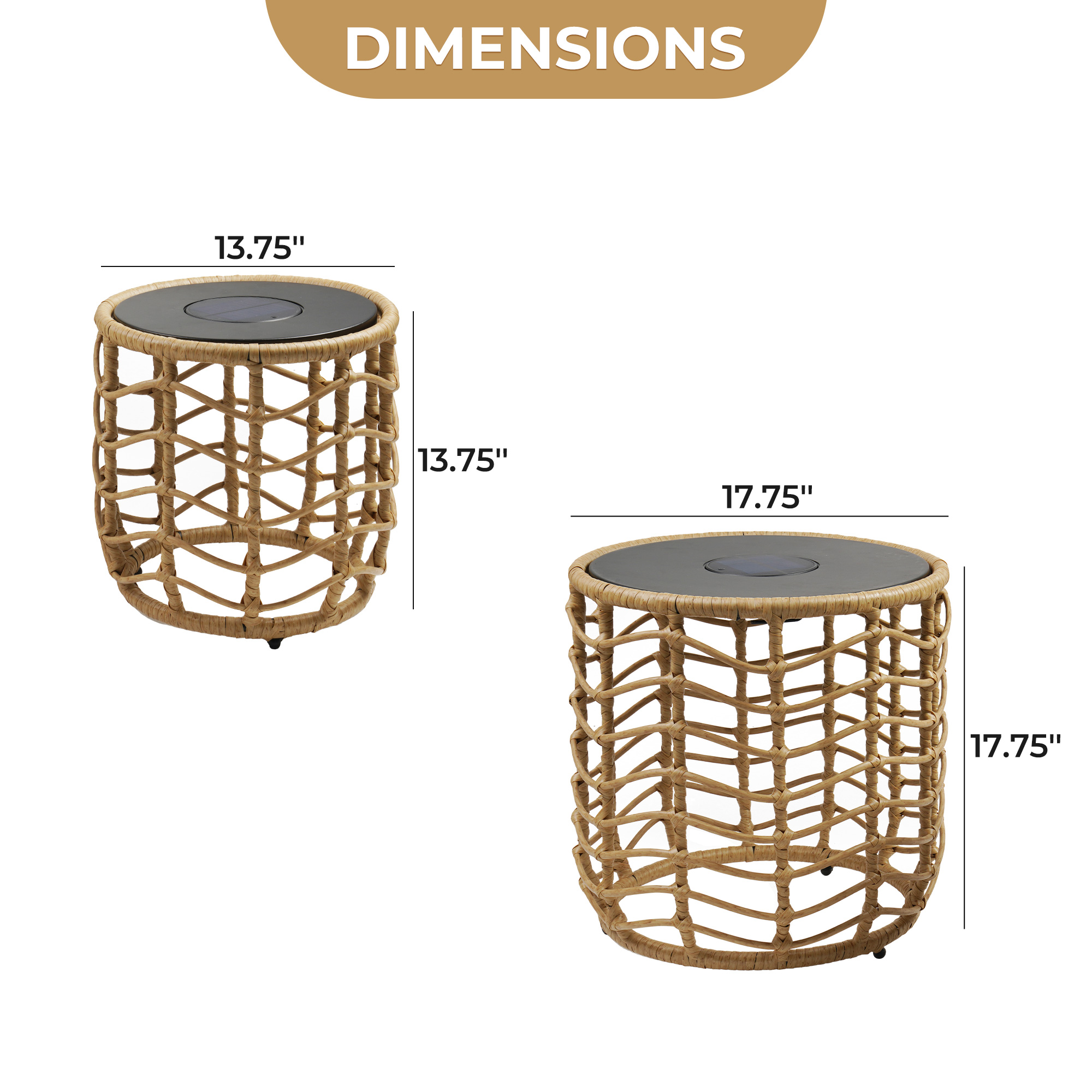 Small size: 13.75''DIA × 13.75''H